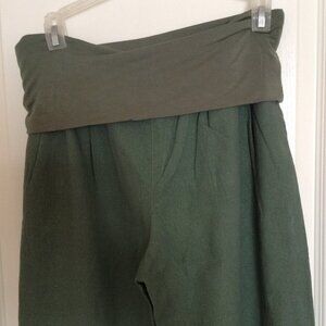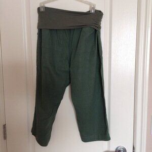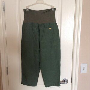 Body Glove Women's Linen Capri High Waisted Pants Green Size S Wide Leg