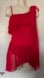 Body Wrappers dress, in excellent condition. Vibrant red, mesh draped with shoulder and wrap skirt detail. Marked size large