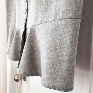 Body by Victoria Heather Grey Pencil Skirt. Beautiful lightweight heather grey pencil skirt for a fitted silhouette. Features a contoured waistband, hidden zip closure and split flounce hem with 3 grey buttons that can open for a deep vent detail. A stylish feminine sophisticated look for the office or informal occasions.