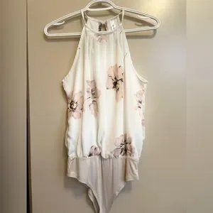 Sleeveless high collar bodysuit, very light. Slightly flowy. Cute button detail closure key hole back neck closure