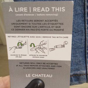 Very nice denim dress with an assorted belt. Sold new, with tag. Stops to the knee if your height is under 5ft 4in. Can be worn all year long. Paid $110 (CDN). Reason for sell: too small, I had to buy a size L to fit my figure.