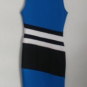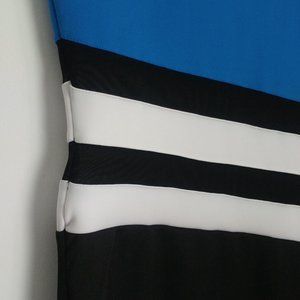 Bodycon Midi Dress Color Block Blue Black White Athleisure Sporty Casual Fun XXS