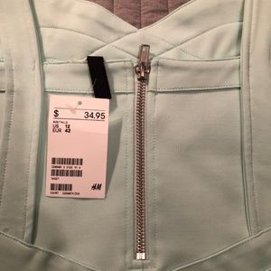 Bodycon strappy mint mini dress. Silver zipper on back and added wrap design to accentuate curves. Slightly shorter at front to mimic a wrap bandage dress.