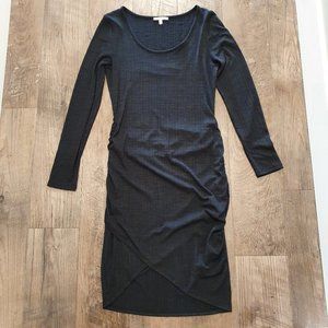 Brand new, no tags. Never worn. Flattering ruching on the sides. Wrap front. Comfortable stretchy long sleeve T-shirt feel. Dark grey/charcoal color.