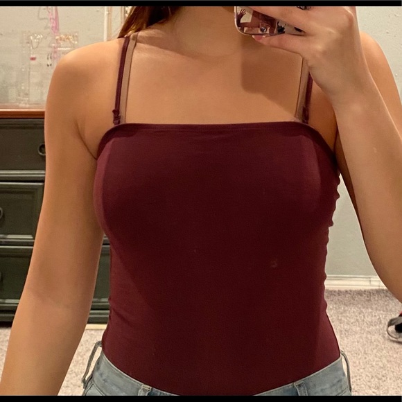 Maroon bodysuit with removable and adjustable straps