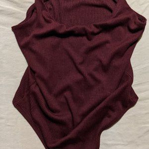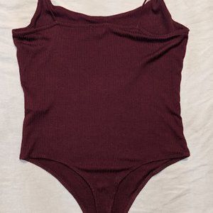 Maroon bodysuit with fun texture. Snap closures, strong and comfy straps!