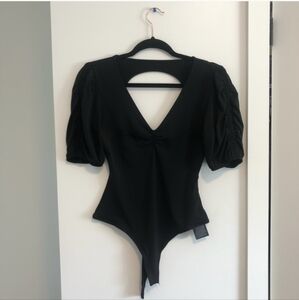 2. Black, puff sleeve, key hole design, size small from Guess.