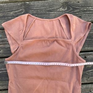 -- Minimalist design: square neck, cap sleeve, high back, snap closure