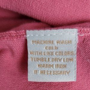 Bogari pullover top size medium with covered button detail on sleeves. 80% rayon, 18% polyester, 2% lycra. Salmon pink.