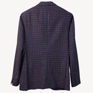 Crafted from the finest wool-silk-linen blend, the Boglioli Navy Red Check Blazer features a three-button closure and double vents for a timeless style. Its unlined construction and notched lapels provide comfort and breathability, while the two exterior and interior pockets offer convenience. Elevate your wardrobe with this expertly-made, single-breasted blazer.