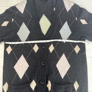 Bogner 100% Wool Knit Argyle Geometric Long Sweater Cardigan Size 10 - Please see pictures for accurate sizing.