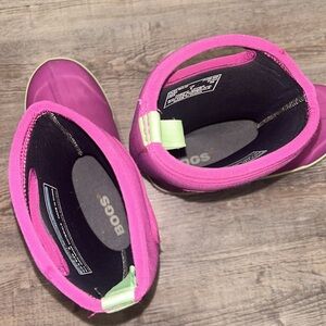 Stay stylish and dry with Bogs waterproof boots. Featuring a vibrant pink color, these boots are perfect for rainy days.