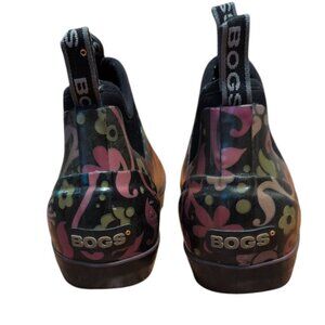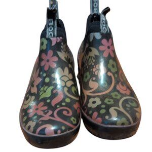 Bogs Shoes Mattie Corsage Black Purple Floral Ankle Boots Garden Shoes Rain Boot