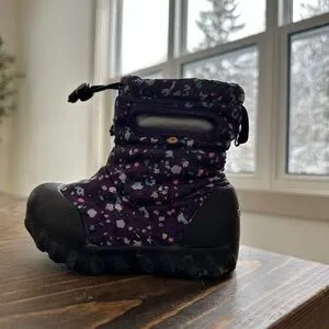 Keep your child's feet warm and stylish with these cozy winter boots. Featuring a vibrant purple design with black accents, these boots are perfect for snowy adventures.