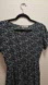 Elegant dress with a floral pattern. Features a mix of blue, white, and black colors.