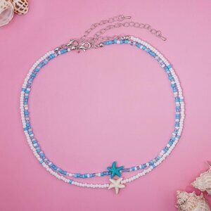 Bohemian Beaded Necklace for Women Layered Choker with Blue Starfish Pendant