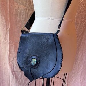 Bohemian Black leather cross body/shoulder bag/purse with labradorite stone. NWT