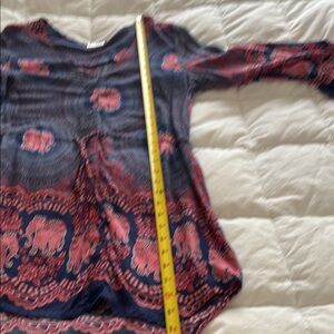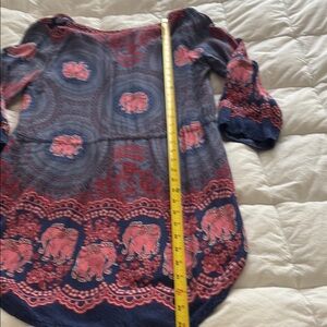 Cool tunic style with a bohemian elephant print. Features a mix of gorgeous blue and pink colours.