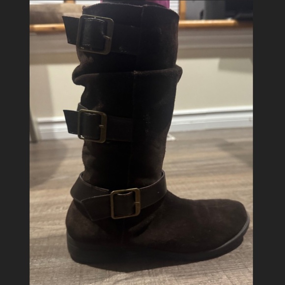 Bohemian Fall Cozy Brown Suede Mid-Calf Boots with Buckle Straps