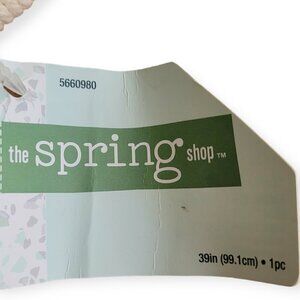 Enhance your space with this cream macrame hanging planter featuring a bohemian design.