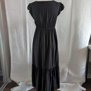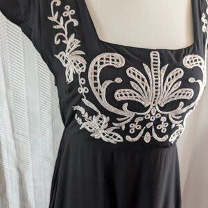Bohemian Maxi Dress Black with White Embroidery Ruffle Hem Small cottagecore