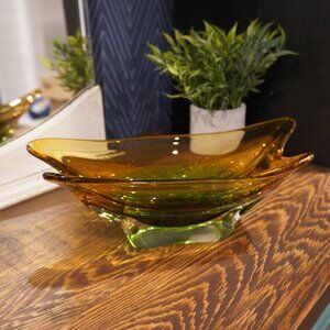 Vintage Bohemian Niagara Series Amber & Green Sommerso Czech Art Glass Bowl – Karel Zemek for Mstisov Glassworks, Karlovarske Sklo, Moser – Hand-Blown Centerpiece