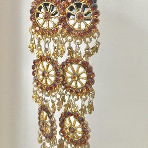 Bohemian Style Golden Brown Rhinestones Stones Long Earrings - Fashion Jewelry