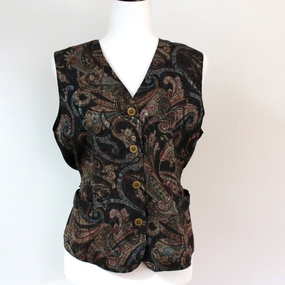 Bohemian black paisley vest, vintage tapestry waistcoat whimsigoth, adjustable