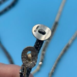 Black onyx stones twined in a dark grey leather.