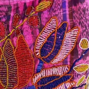 Turn heads with this vibrant boho tote! Features stunning hand-beaded floral embroidery on a hot pink woven base. Lightweight, roomy, and full of personality — perfect for festivals, beach days, or adding color to your everyday style. One-of-a-kind piece!