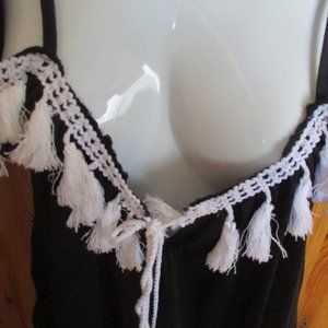 Boho Black & White Tassel Peasant Top NEW SM/MED