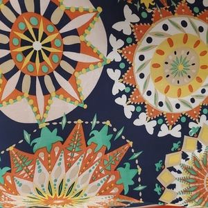Super cute navy blue blouse with funky design, sheer, pleated back and flouncey sleaves.