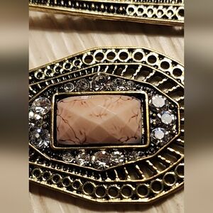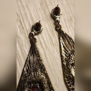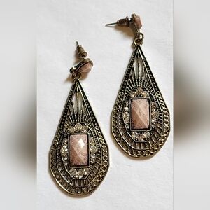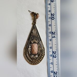 These elegant teardrop earrings feature a stunning gold finish with delicate pink accents. Perfect for adding a touch of sophistication to any outfit.
