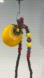 The necklace strand is a delightful mix of natural wood beads in a warm brown hue, interspersed with vibrant pops of red and sunny yellow round beads, and small turquoise disc beads. There are also unique, textured gold-toned accent beads adding a touch of bohemian flair.