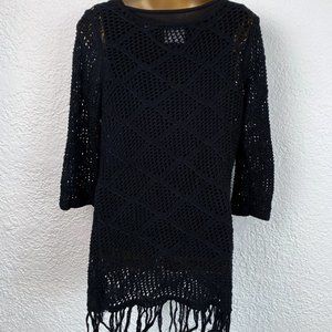This Boho black crocheted dress or long top is in excellent condition. NO snags, rips or damage.