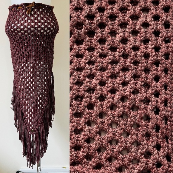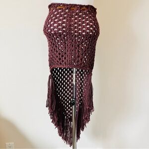 Boho Crochet Festival High Low Skirt Loose Knit Beach Swim Cover Up Fringe Sz S
