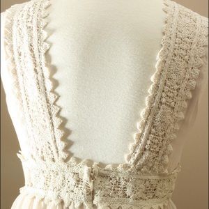 The perfect mix of vintage and au courant style to don to your next special event. Featuring a plunge V-neck, laced with intricate detailing. Sheer, structured skirt with full body lining. Hidden back zipper closure. Available in small, medium or large. 65% Cotton 35%. Length: 32in from top 🛍Bundles of 2 or more items receive 20% off their entire order + one flat rate shipping fee! Questions? Ask below!🛍