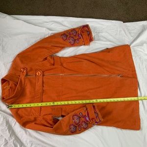 Boho Embroidered Orange Corduroy Coat by KanaBeach Women’s 12