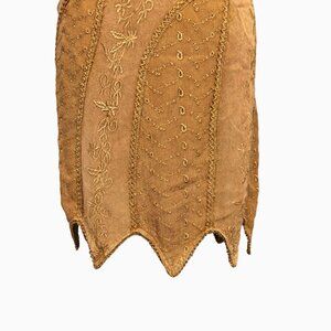 • Gorgeous golden tan hue with floral & vine embroidery throughout