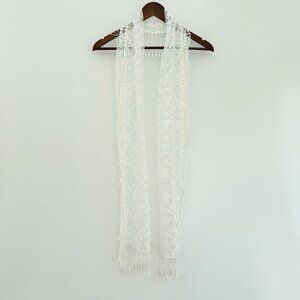 Boho Fairy Ivory Lace Flower Embroidered Scarf With Tassels All Around