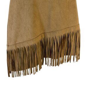 Boho Faux Suede Fringe Mini Skirt, Asymmetrical Hem, Tan/Brown