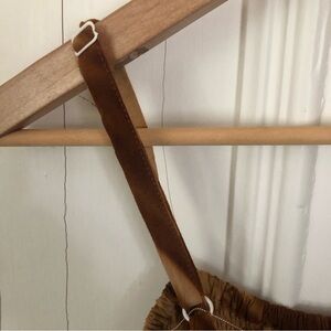 This midi dress in a tie dye pattern features adjustable straps and a ruched bodice.
