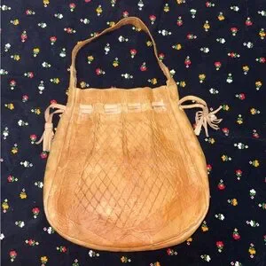 This adorable all-leather tan drawstring/hobo bag is perfect for complementing your boho outfits. It’s been conditioned and cleaned, ready to be loved again.