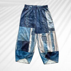#BohoFashion #PatchworkPants #BarrelSilhouette #FestivalStyle #Beachwear #Cottagecore #VintageInspired #PrelovedFinds #DigitalPrintedDenim #PatchworkPants #SummerFashion #GarterizedWaist #VersatilePants
