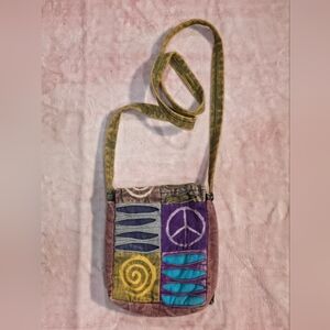 Boho Patchwork Crossbody Bag Peace Sign & Spiral Hippie Festival Purse 8x7”