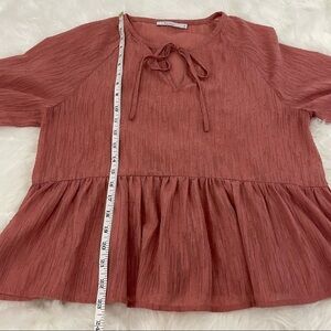 Boho Peplum Top with Balloon Sleeves, Blush, Size Small