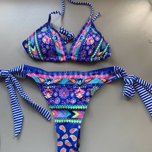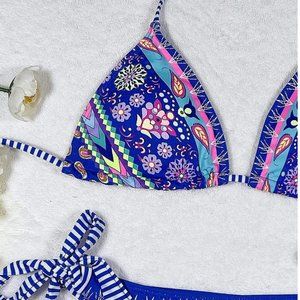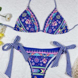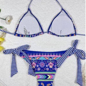 Boho Print Knot Side 2pc Bikini Swimsuit Bathing Suit