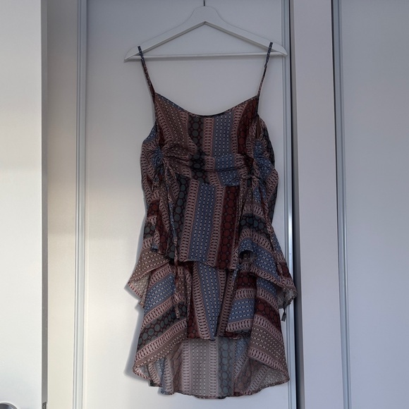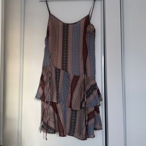 Boho Print Ruffle Hem Mini Dress