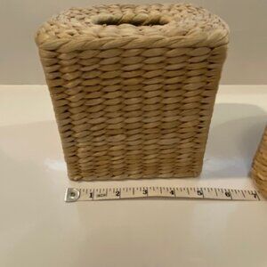 Boho Rattan/ Wicker Tissue Box Cover plus 2 lidded basket Decor