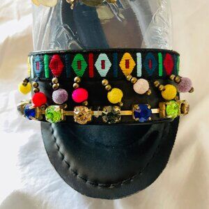 Boho Rhinestone and Beaded Platform Wedge Sandals Size 6